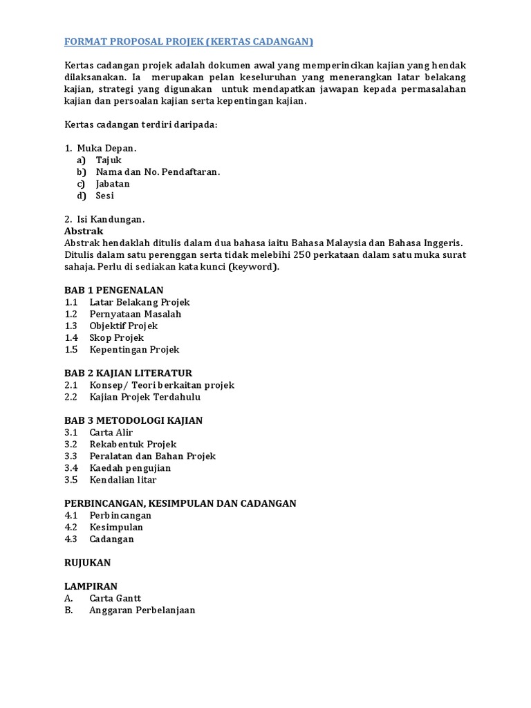 Lazimnya pendidikan terbahagi kepada dua iaitu pendidikan secara formal dan juga. Contoh Proposal Proyek Format dan Cara Membuatnya. 2 ISI KANDUNGAN Butiran Muka surat Abstrak 1 Isi Kandungan 2 Penghargaan 3 10.